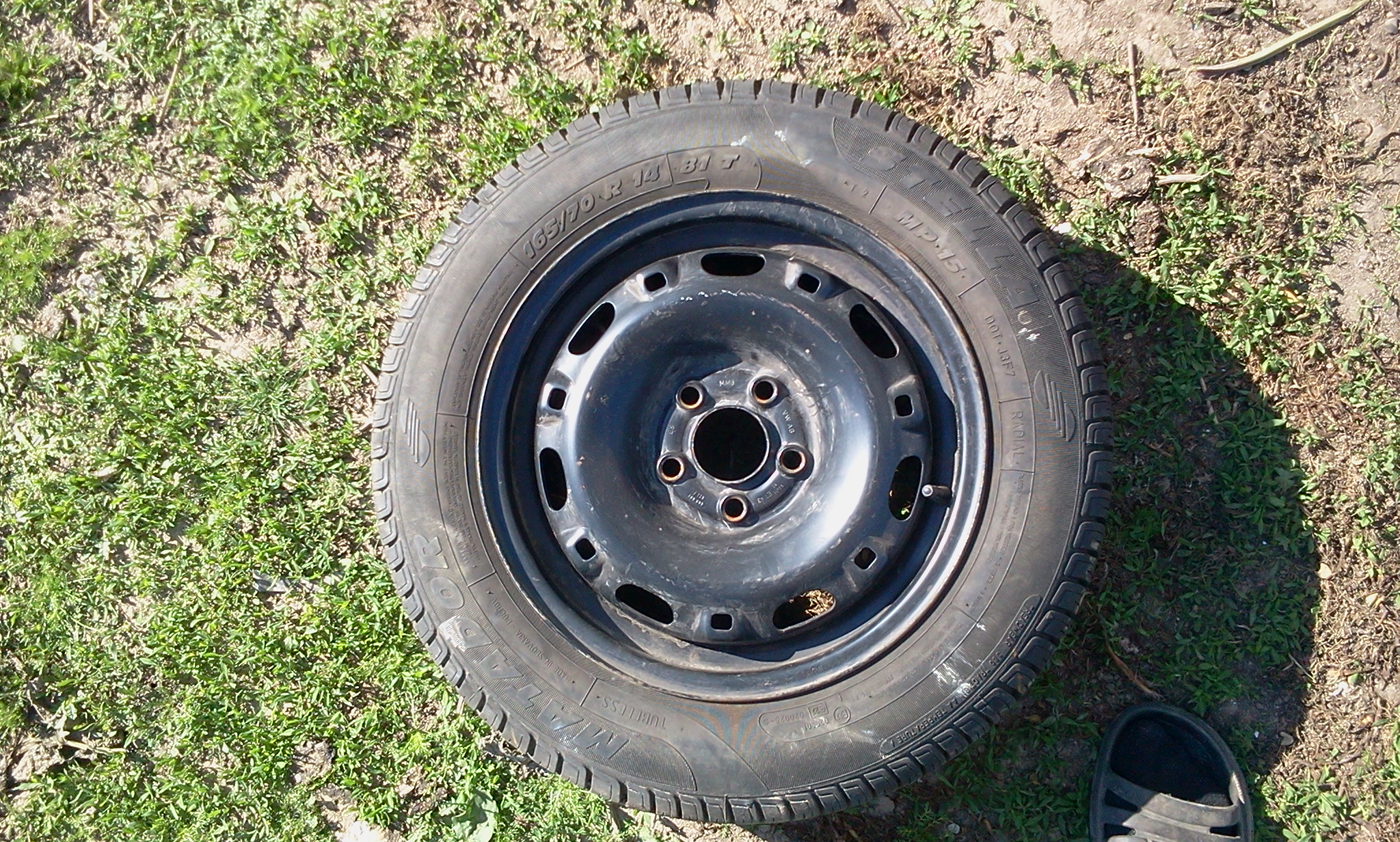 Радіус - 16 Розмір - 205 на 60. Був в одному місці маленький прокол від цвяшка, то успішно був заклеєний латкою і слідів жодних не видно.