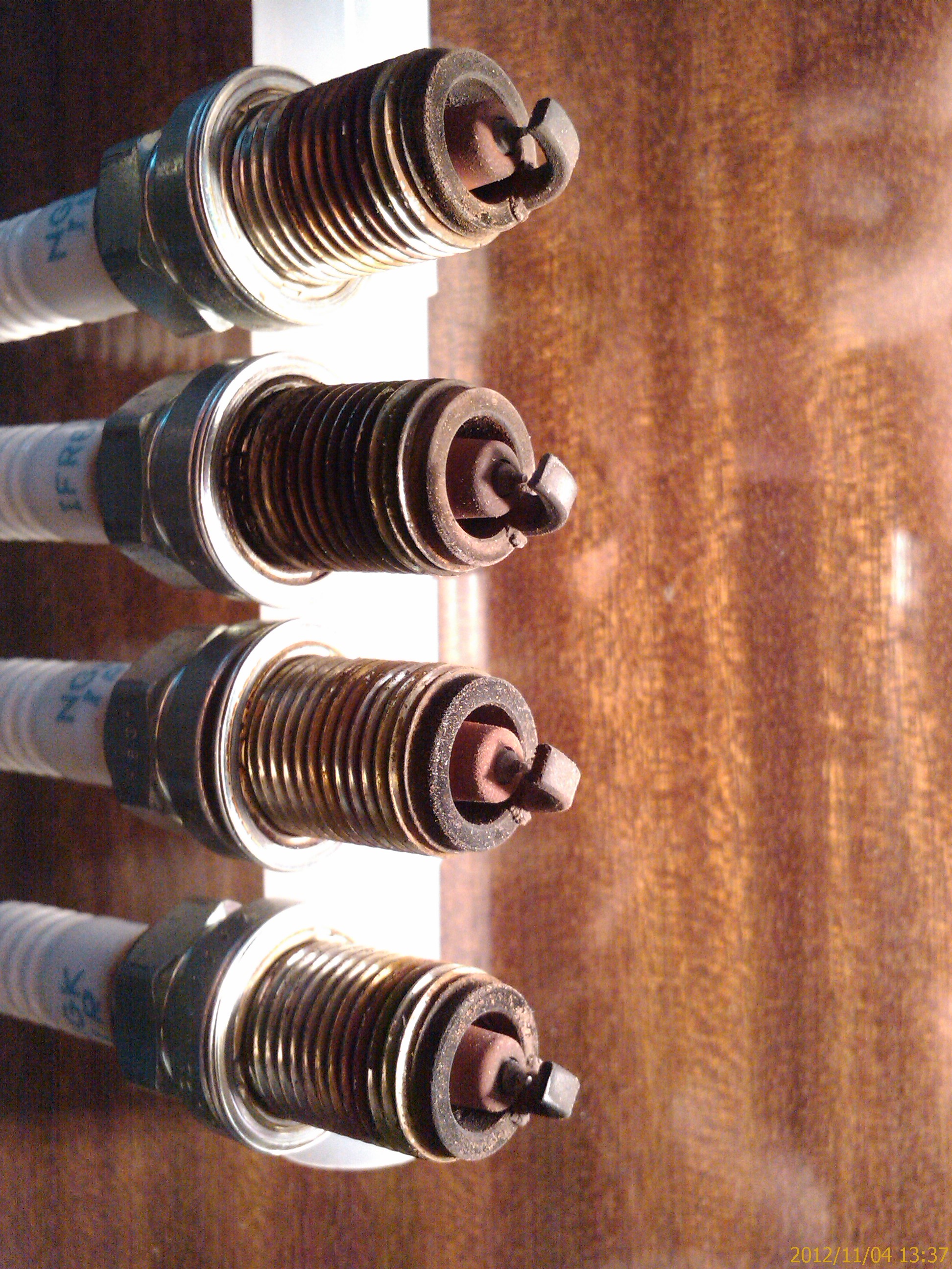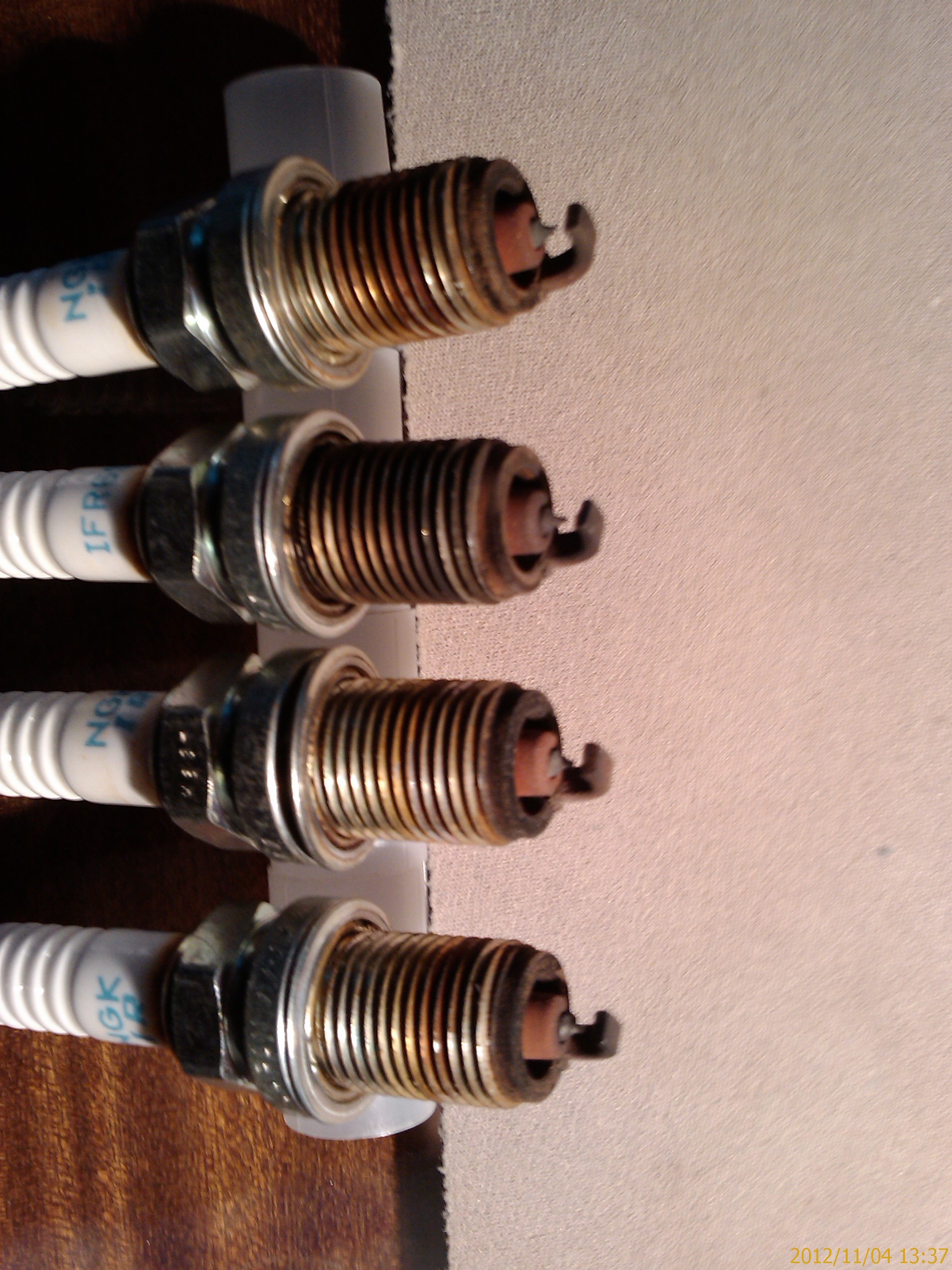 Якось зовсім забув що по регламенту міняти треба було на 80к... Проблем не було ні "джекі-чанів", ані при їзді-розгоні, витрата палива - адекватна Просто сказали, що краще замінити свічки, ніж із-за них котушки, якщо погорять Пробіг 96,5ткм, 65ткм на газу; NGK IR IFR6S. Проїхався 6км після заміни, може суб'єктивно - трошки "веселіше" фото телефоном, sorry, але зауваження клубу вислухаю