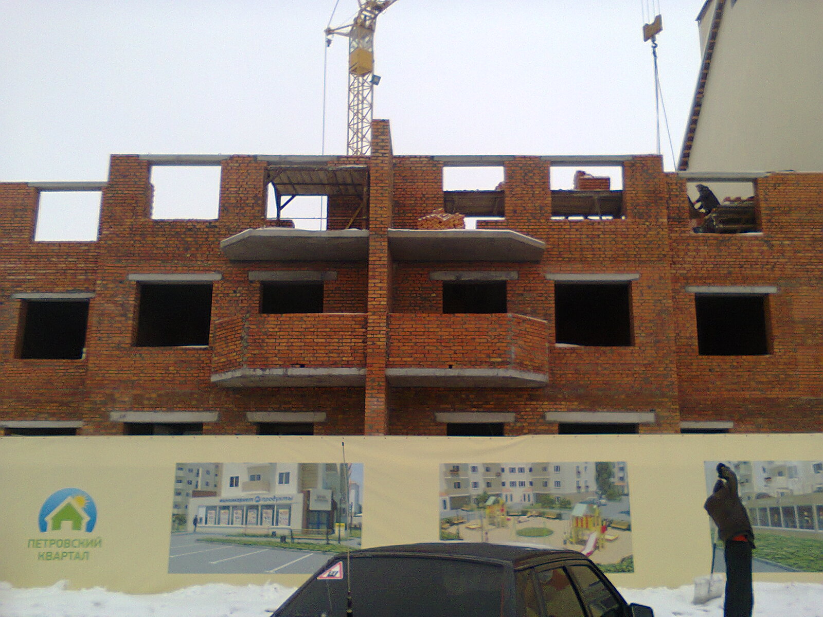 Всем добрый день! Выкладываю, что нафоткали В субботу были в Петровском. Полазили по стройке - рабочие есть, краном поднимают кирпичи, на одном из этажей - (БХ 1В, квартиру не назову....) встретили сантехника, подключает отопление - проверяет. Вообщем, работы ведутся - те,какие возможно я так понимаю. Фоткали на телефон, так что не обессудьте
