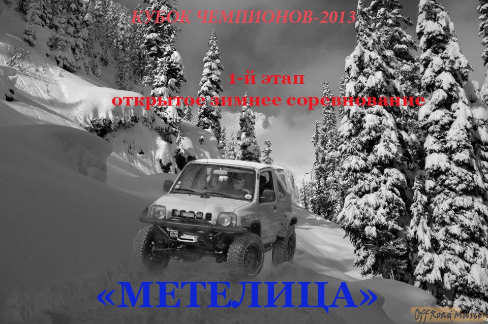 Друзья, 26 ЯНВАРЯ 2013 года состоится открытое зимнее соревнование по внедорожному ориентированию - МЕТЕЛИЦА! Участие свободное, и приглашаются все желающие: как участники, так и зрители. Первый этап соревнования зимнего формата МЕТЕЛИЦА рассчитан на легкую и задорную гонку для всех авто 4х4 с любой степенью подготовки. Продолжительность снежной гонки - 5 часов, количество точек для взятия - 30 штук. Финиш соревнования в 16:00. В экипаже допускается участие по четыре человека. По просьбам трудящихся допускаются шины с шипами. Стоимость участия 450 грн с экипажа. Место проведения в 25 км. От Киева. В лагере будут организованы точки питания, музыка и горячий кофе. Победители будут награждены денежными призами и памятными подарками. Подробная информация на http://www.offroadmaster.com/topic/40930-первый-этап-кубка-чемпионов-2013-зимняя-гонка-мет/ Все вопросы по тел: 044 4576169, 067 6912101