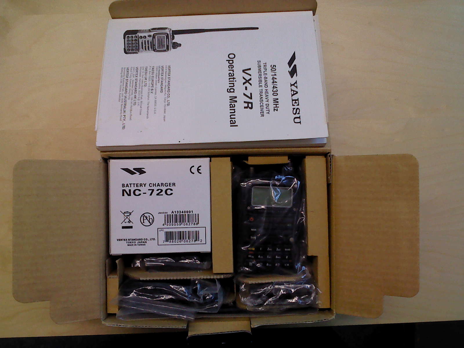 Комплектация: -Радиостанция VX-7R аппарат MADE in JAPANь -Акумулятор FNB-80LI; -Антенка УКВ 2м/70см; -Насадка на антенку для 6м диапазона; -Чехол кожанный оригинальный; -Клипса для ношения на ремне; -Зарядка родная не паяная (одна проблемка есть, одна нога вилки отломлена); -Упаковка родная; -Полный комплект документов и даже наклейка Yaesu есть в наличии.