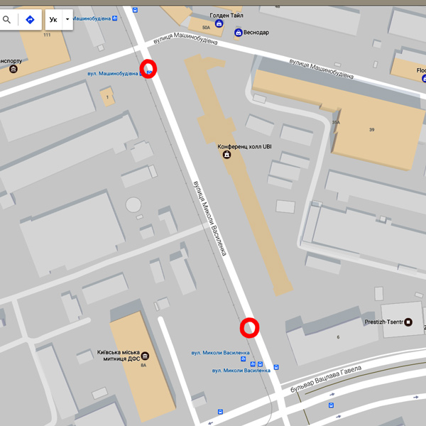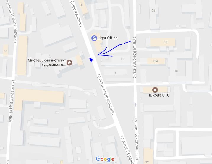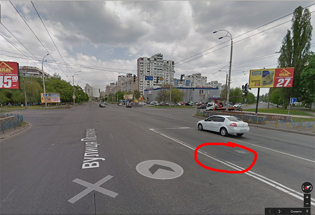 Согласен, в моем понимании, тема "опасные места в Киеве" - это не ямы (само собой это тоже опасно) а стабильно опасные идеологически, так сказать. Даю пару таких мест из своего района проживания. Первое - Перекресток Сырецкой и Бондарской Водители хотят повернуть с Сырецкой на Бондарскую, но в час пик им навстречу идет непрерывный поток по Сырецкой от Кирилловской. И возникает следующая фигня. Водитель напряженно выжидает просвета, чтобы газнуть - нырнуть влево, а там по переходу идут себе пешеходы, вообще не представляющие себе в уме этой ситуации. Они не ощущают опасности от автомобиля, стоящего на перекресте, а водитель не особо отслеживает пешиков. И привет Чтобы не быть голословным - представляю фото из Гугла столба с памятными цветами и венками. Насколько я вижу, на данный момент этих цветов раза в два больше. Второе - Разворот напротив пивзавода Оболонь Лучше раскрутиться на развязке перед ним. У меня необходимость им воспользоваться возникала при желании заехать на ГлобалФиш за рыбкой. Поток по Богатырской идет практически всегда без светофорных просветов. И никто в нем благотворительностью не страдает. Поэтому приходится выстреливать с визгом, о чем свидетельствуют черные полосы на асфальте на фото.
