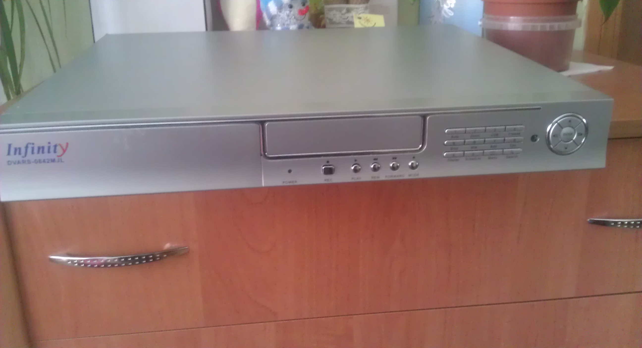 Стационарный видеорегистратор infinity dvars 0842mjl.Вход: 8 камер(bnc),микрофоны 2 Раземы:lan,USB,com,датчики.Выход 2vga,s video.Внутри место под винтчестер,привод.Есть карман.
