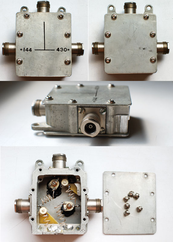Продаю диплексор 144/430 (один двухдиапазонный трансивер на две однодиапазонные антенны или два однодиапазонных трансивера на одну двухдиапазонную антенну). Изготовитель - UR5UFD. На достаточную мощность и изоляцию в расчете на аппараты типа IC-9100, TS-2000, FT-747 и им подобные. Разъемы типа N. Разборная конструкция допускает подстройку при необходимости. 300грн.