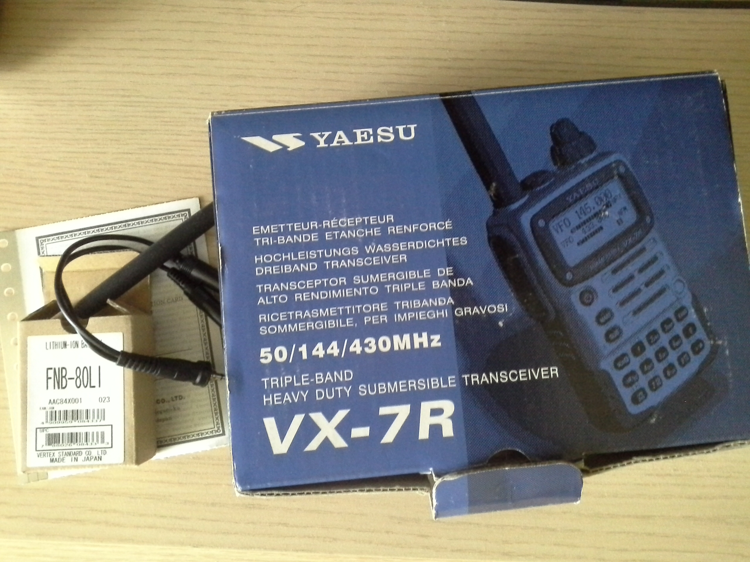 Продам Yaesy VX-7R в состоянии на "4" по 5-бальной шкале. Все работает, заглушки и прочее на месте, все открыто. Станция принимает в т.ч. и СБ диапазон. 3 аккумулятора, среди которых один совсем новый, остальные в отл. состоянии, 3 антенны, тангента, зарядный стакан и все такое, что на фото. Есть коробка и все такое. Цена 2500 грн. Причина продажи состоит в снижении моего интереса к станции, а ее надо любить более горячо... В Киеве, отправка почтой дальше. 0934213717
