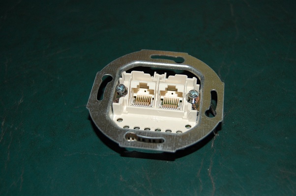 В данной розетке 16 контактов (по 8 с каждой стороны), из телефонного провода торчат 4, куда воткнуть эти 4 (или 2 цветных), чтобы передать сигнал по rj-45 к модему?