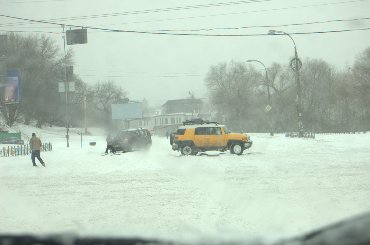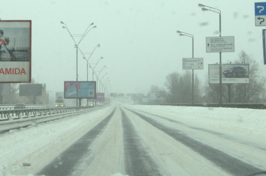 проехать по встречной полосе на святошинском мосту - это была единственная возможность как то двигаться. Направление в сторону окружной было блокированно намертво фурами. И надо заметить - разъезжались без проблем и взаимных претензий. Порадовали несколько внедорожников, включая дефендер с лейбой "Экспедиция" которые втягивали на подъеме буксующие машины на шнурке.