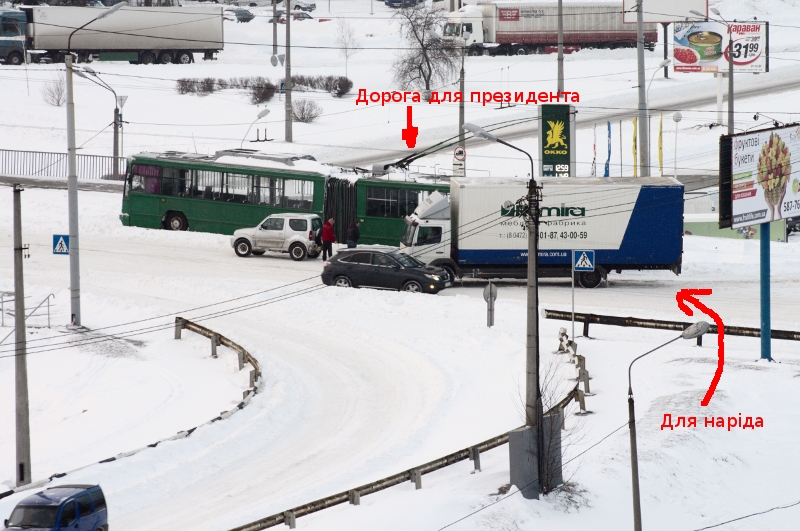 Линия Троещинского скоростного трамвая в 16-05. В 15-00 передали по радио (откапывал в это время гараж - рядом с трамвайной линией), что он уже функционирует "в штатном режиме".