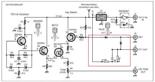 нет там не чего дефицитного и с фиксированным расстоянием между ножками. на кар дачах идите сразу в Имрад (место вроде 58, 27) или 9в там наверно все и возьмете. хочу обратить ваше внимание на то что в етой схеме нет автомат переключения прием передача. есть один переключатель при его включении включается схема и радейка переходит на передачу. при выключении прием. кстати транзистор Q5 и прилегающие к нему елементы можно исключить из схемы если переключатель поставить с двумя групами и второй групой подавать "-" на PTT AUT. можно попробовать сделать автомат прием передача. выкидываем транзистор Q5 и прилегающие к нему елементы. соединить PTT AUT с KEY и поставить не большой емкости (подобрать) електролит через диод и возможно подстроечный резистор между соединением PTT AUT/KEY и "+" мы получим простенькое реле времени. возможно надо будет параллельно кандеру поставить подстроечный резистор для регулировки етого реле времени. ну надо пробовать.