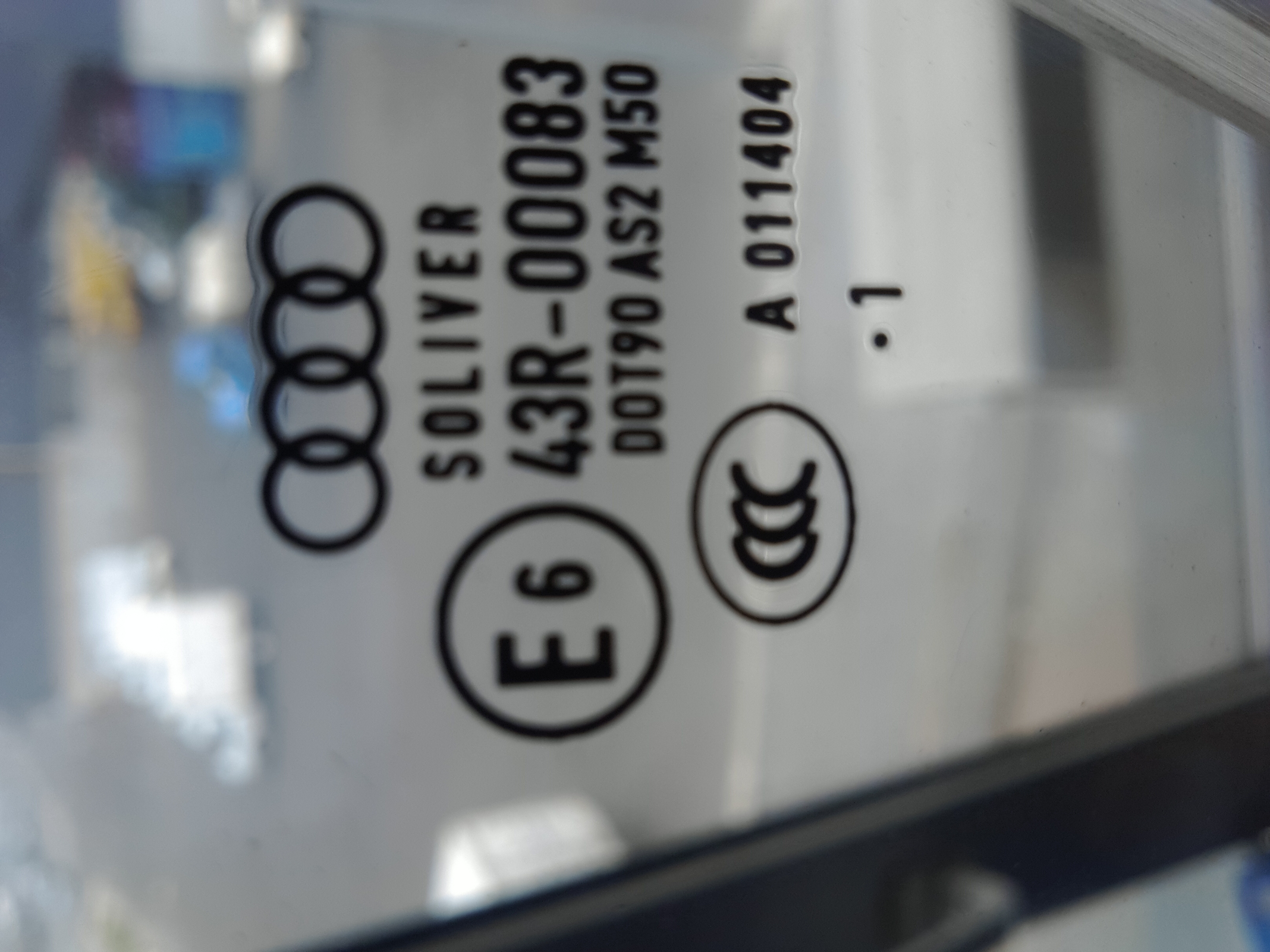 Надпись на стекле: 43R-00083 DOT90 AS2 M50 A011404