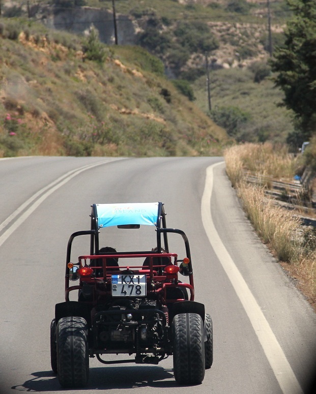 Багги двухместные (тем более квадроциклы) запрещены наверное на дорогах общего пользования? только на грунтовках скорее всего и пляжах. не встречали их на дорогах? Или имхо удовольствия таких поездок того не стоят? В пекло в конце дня быть красным от жары, пыльным и потным...