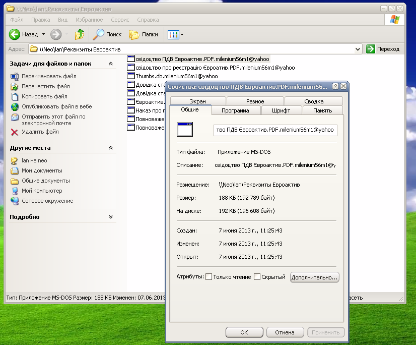 Нашли у себя точно такой же файл, с точно таким же ящиком. Ахренеть..