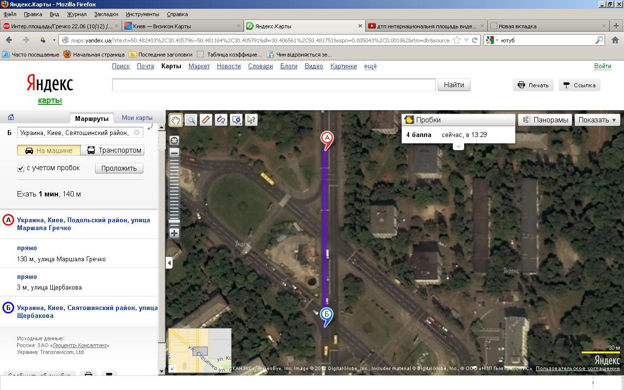 померял ))) вот "http://maps.visicom.ua/c/30.40689,50.48191,18/d/u8vx5vucf,u8vx5yhc4,u8vx5yhc4,u8vx5yhc4" смотри видео где машина появилась и в гду удар автобуса был....