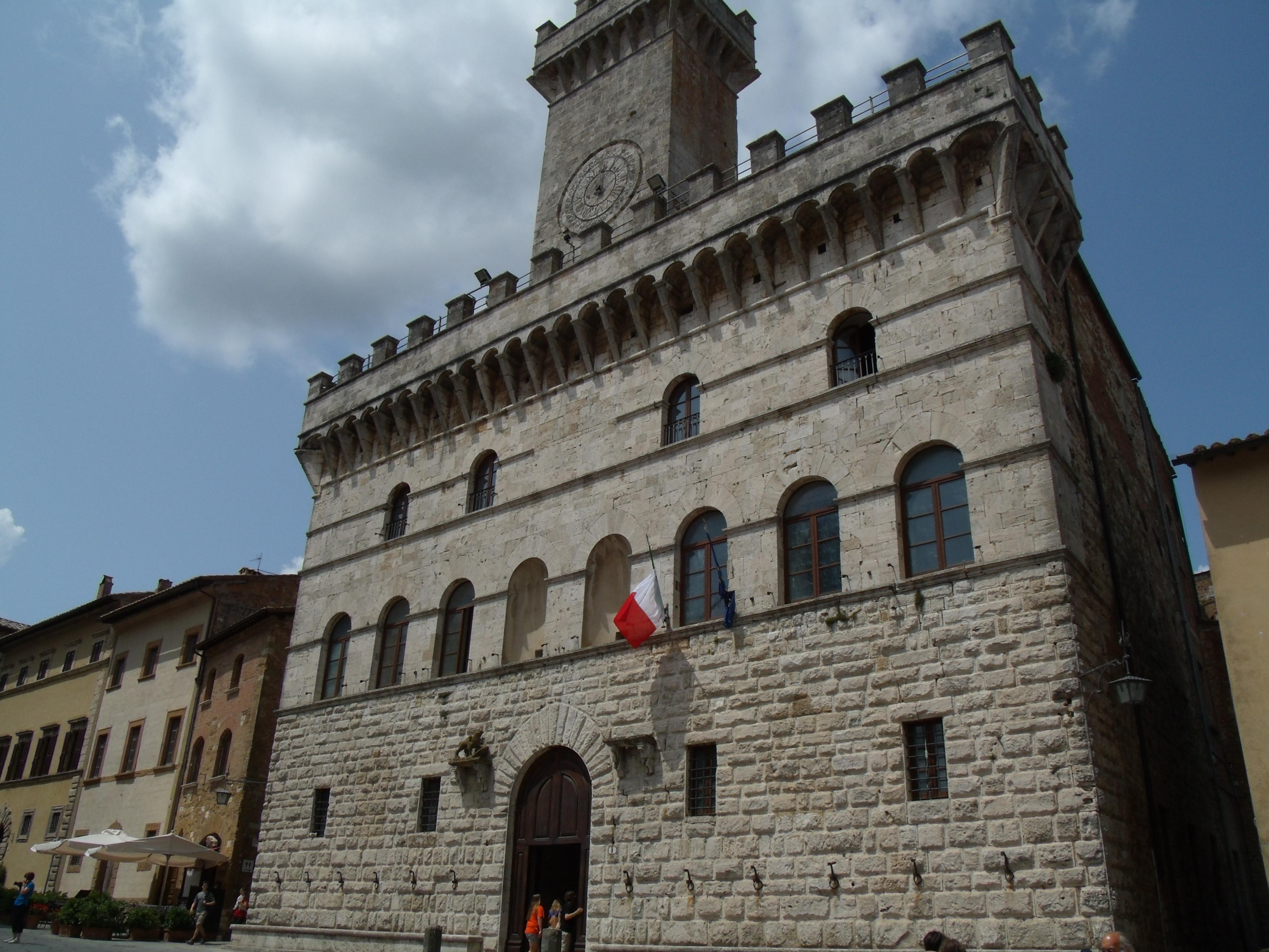 Рассчитались с кемпингом. Нас ждала Венеция. Но, как обычно, по дороге посетили красивый средневековый городок - Монтепульчано. Montepulciano parking 43.098278°,11.785571°. Ближе к вечеру въехали в наш венецианский кемпинг Camping Village CAVALLINO, Via delle Batterie 164, 30013 CA’ BALLARIN, CAVALLINO www.campingcavallino.com, 45.457253°,12.500370°. Пробег 560км. Внизу - ратуша Монтепульчано.