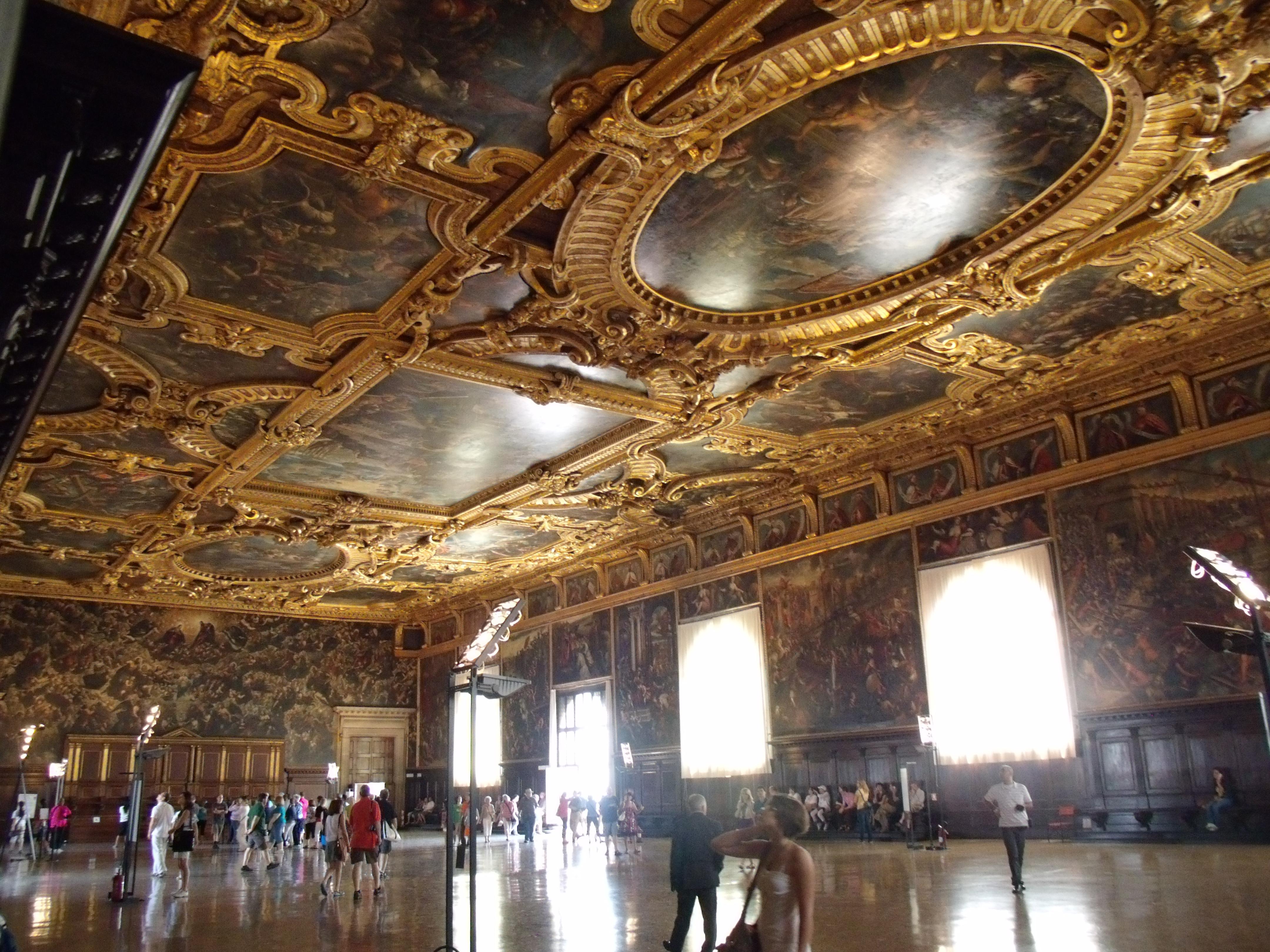 Пару слов о кемпинге. Впервые увидел, что такое кемпинг **** звезды! С одной стороны – море, внутри – трехзонный (джакусси, детский, взрослый) бассейн; супермаркет, детские площадки, теннисные столы, летний театр с ежедневными аниматорами для детей и взрослых. На утро отправились на машине примерно 7км на оконечность полуострова в Пунта Саббиони, где купили комбинированные билеты на теплоход в Венецию + любые вапоретто в пределах Венеции. 30мин – и мы в Венеции. О своем восхищении долго писать не буду, скажу только – очень понравились базилика и музей дворца дожей. Дети не позволили быстро перемещаться и все увидеть, были мысли еще 1 день провести в Венеции – но уступили детям и провели последний день в кемпинге. Пробег 14км. На фото - дворец дожей, зал с картинами побед венецианской республики (1 фото на Венецию - да простят меня читатели...).