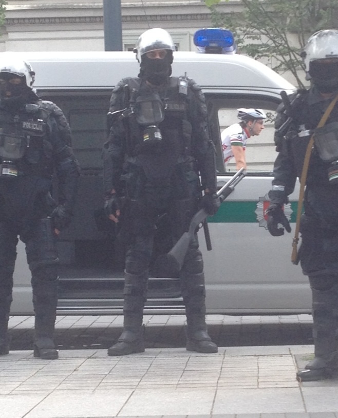 Группа охладителей то же готова. Так что нафик, накручиваю телевик, и поснимаю это на расстоянии. Кстати, на улицах в порядке вещей досмотр рюкзаков и сумок, ни кто не возмущается, открывают, показавыют и идут дальше. Видел у парня вытянули флягу, открыли понюхали содержимое, и отпустили. Интересно, что искали? Народ больше обсуждает как классно смотрится полиция, чем саму тему парада.
