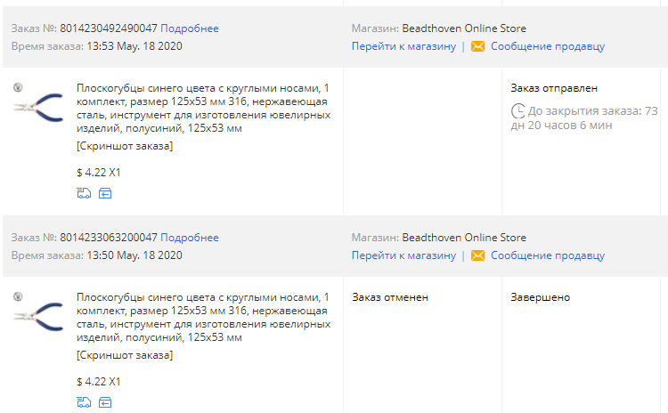 А у меня с Али на днях вообще анекдот печальный произошел: Заказал чехол на тел, но провтыкал с моделью. Ошибку обнаружил почти сразу (через час) и отправил продавцу запрос на отмену сделки. Продавец, вместо того чтобы отменить отправил товар буквально через пару часов. Я открыл спор, что товар не тот, что я продавцу отправил запрос на отмену, а он отправил.... Али в течении 2-х месяцев писал, что товар в пути, ждите 10, 7, 4 дня.... Решил, что когда прийдет сообщение , на почту не пойду забирать на Укрпочту, но вчера обнаружил чехол в почтовом ящике... В общем, женили насильно