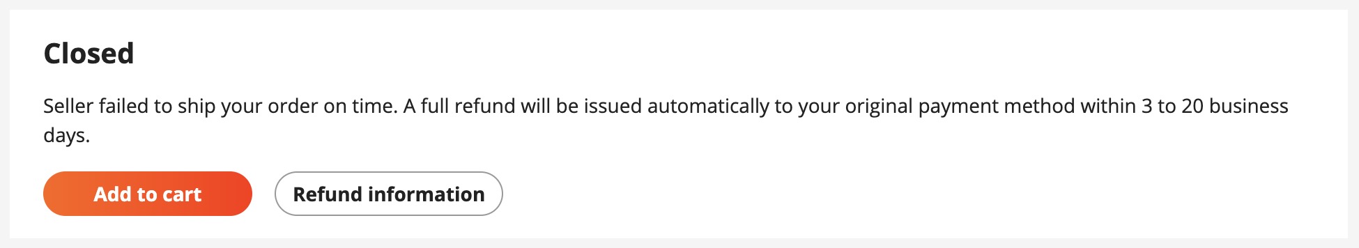 Вперше з таким стикнувся: Замовлення оформив 31.01.2023, й до сьогодні не було жодної інфо про відправлення(продавець на питання не відповідав), на відміну від 2-х інших замовленнь, що оформив наступного дня й по ним отримав інфо про відправлення вже наступного дня, ... аж сьогодні(10.02.23), отримав на E-mail повідомлення: