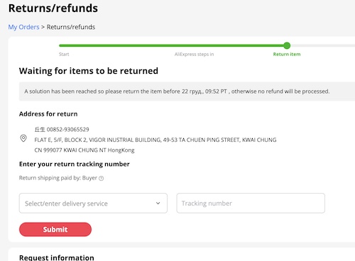 Тобто, тепер я повинен упрашувати продавана, щоб він погодився оплатити доставку назад. Я правильно розумію що так описано в "confirm .. via message chat" ? Просто ахтунг. Незважаючи на те, що прямо над замовленням висить Buyer protection де чітко вказаний другий пункт: