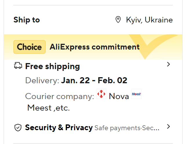 Ну, звісно, не встигли. Відкривати диспут вже тупо не дає, типу товар доставляється, і тому вже на строки ніхто не дивиться. Стукнувся в підтримку, мовляв, хочу диспут, бо після 11.02 мені товар не потрібен і я розраховував саме до цієї дати. Диспут вручну вони відкрили, але мені тут же прийшов лист від аліка, що цей диспут результат invalid, і знову ж таки, тому що товар в транзиті, і приходьте через 10 днів... Заодно в підтримці попросив купон, так як була ж умова shipping guarantee. Однак, незважаючи, що більше жодних додаткових умов не було вказано, підтримка каже "ну, у вас же не було опції fast delivery (хз де це), тому ця умова, shipping guarantee у вас не діє, навіть якщо вказано що діє" )