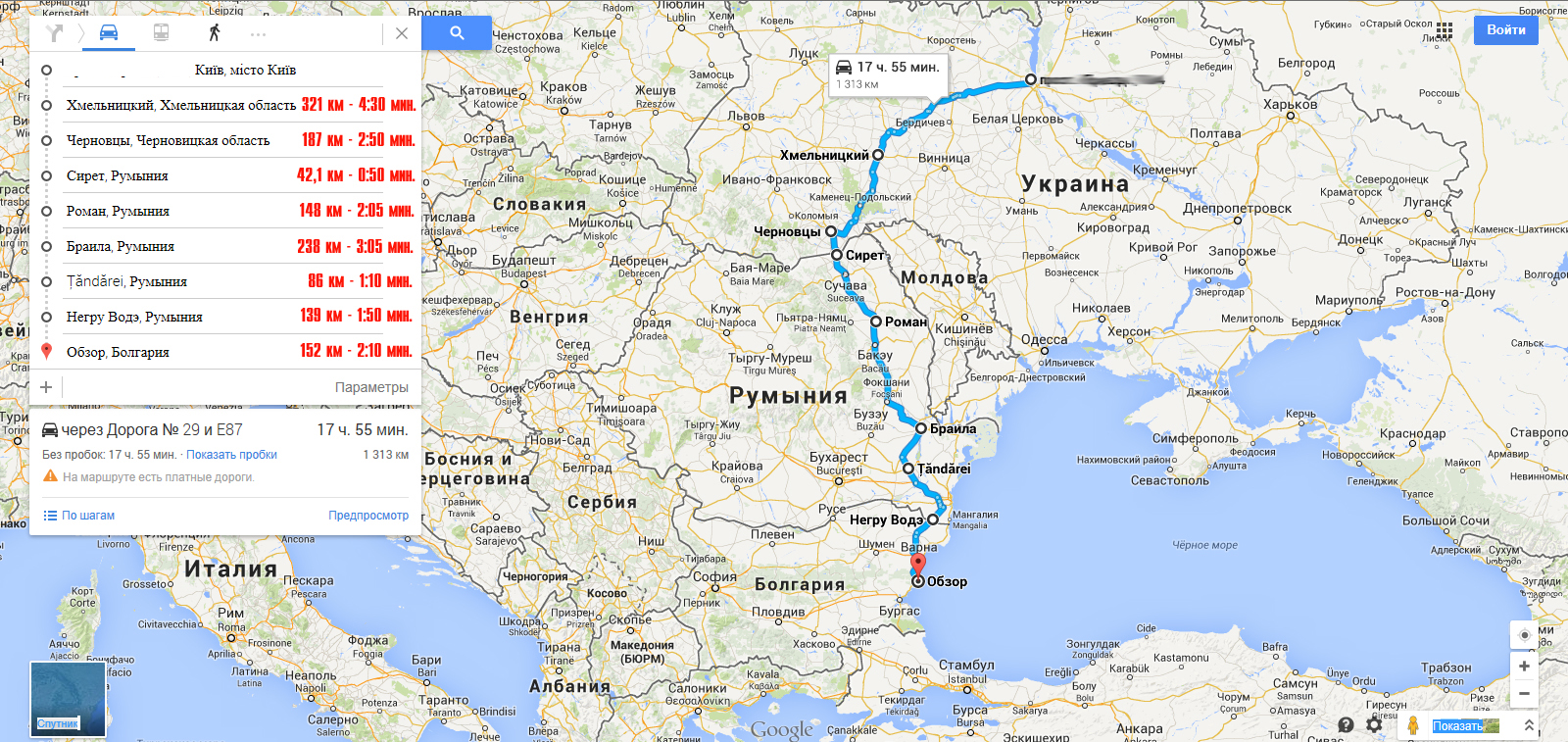 Мы ехали Киев-Хмельницкий-Черновцы-Порубное(граница)-Сирет-Роман- Браила – Tandarey-Негру Воде (граница)-Обзор.