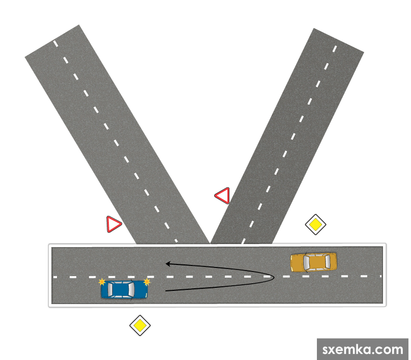И что? Ты взял частный случай, когда дорога имеет разделительную часть. Да, в этом случае надо учитывать каждое пересечение проезжих частей и не оказаться на встречной полосе после выезда из него. Но в стартовом топике у нас нет разделительной полосы. И в том примере, который ты рисовал, тоже разделительной полосы нет. Т.е., там есть одно пересечение проезжих частей! Как в рисунке б) отсюда: http://forum.autoua.net/showthreaded.php?Cat=0&Number=8053456&page=0&vc=1 Потому хочу спросить: что за палочки ты здесь http://forum.autoua.net/showthreaded.php?Cat=0&Number=8052540&page=0&vc=1 чертил посреди перекрестка?