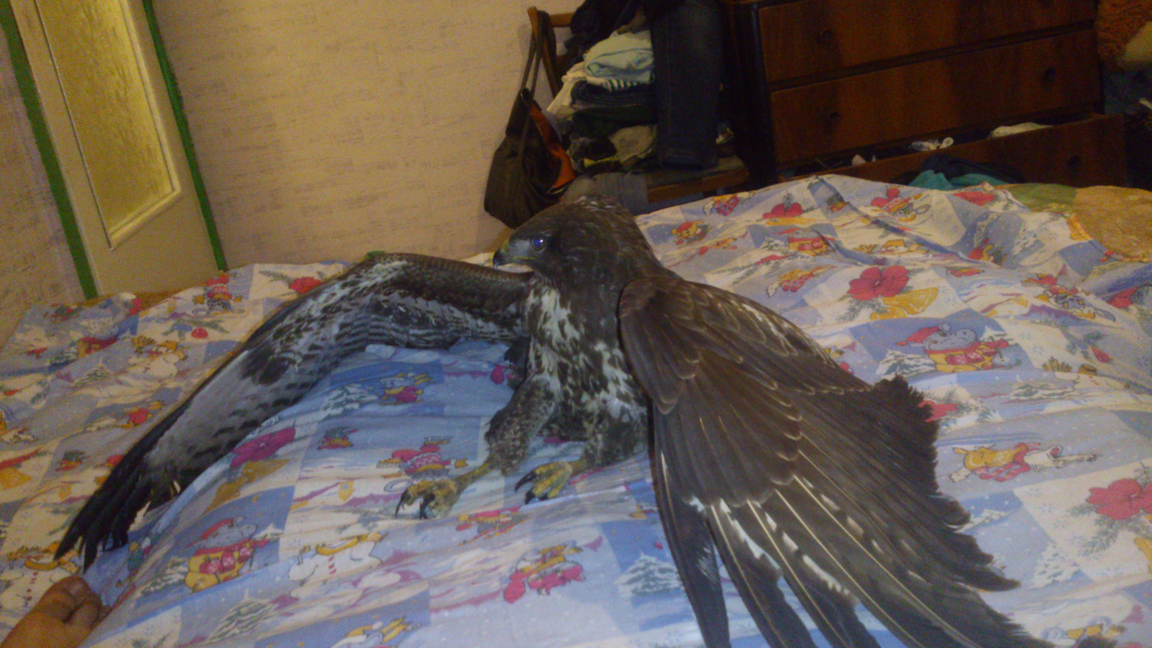 По дороге в Черновцы был подобран сбитый машиной канюк, при осмотре в вет-больнице поставлен диагноз ушиб правой ноги. На ногах не стоит, кусается, пытается летать, ест из рук. Содержать его дома не имею никакой возможности, боюсь как-бы не навредить. Если есть люди понимающие, знающие как ухаживать, готовые взять пташку на содержание - прошу отозваться. 0632666098 С уважением, Сергей!