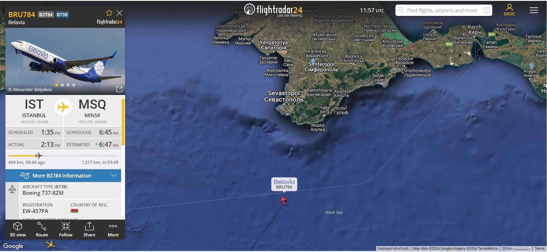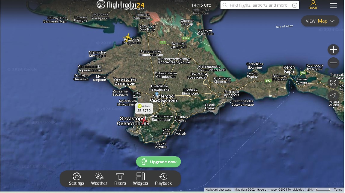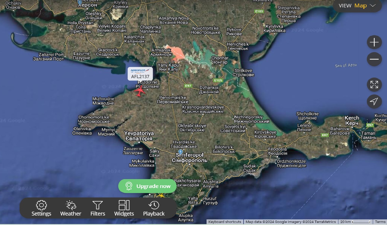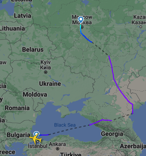 І ще один до Криму наближається тим же шляхом. SVR784, Стамбул-Москва. Над Донецькою областю AUL546 пролітає...