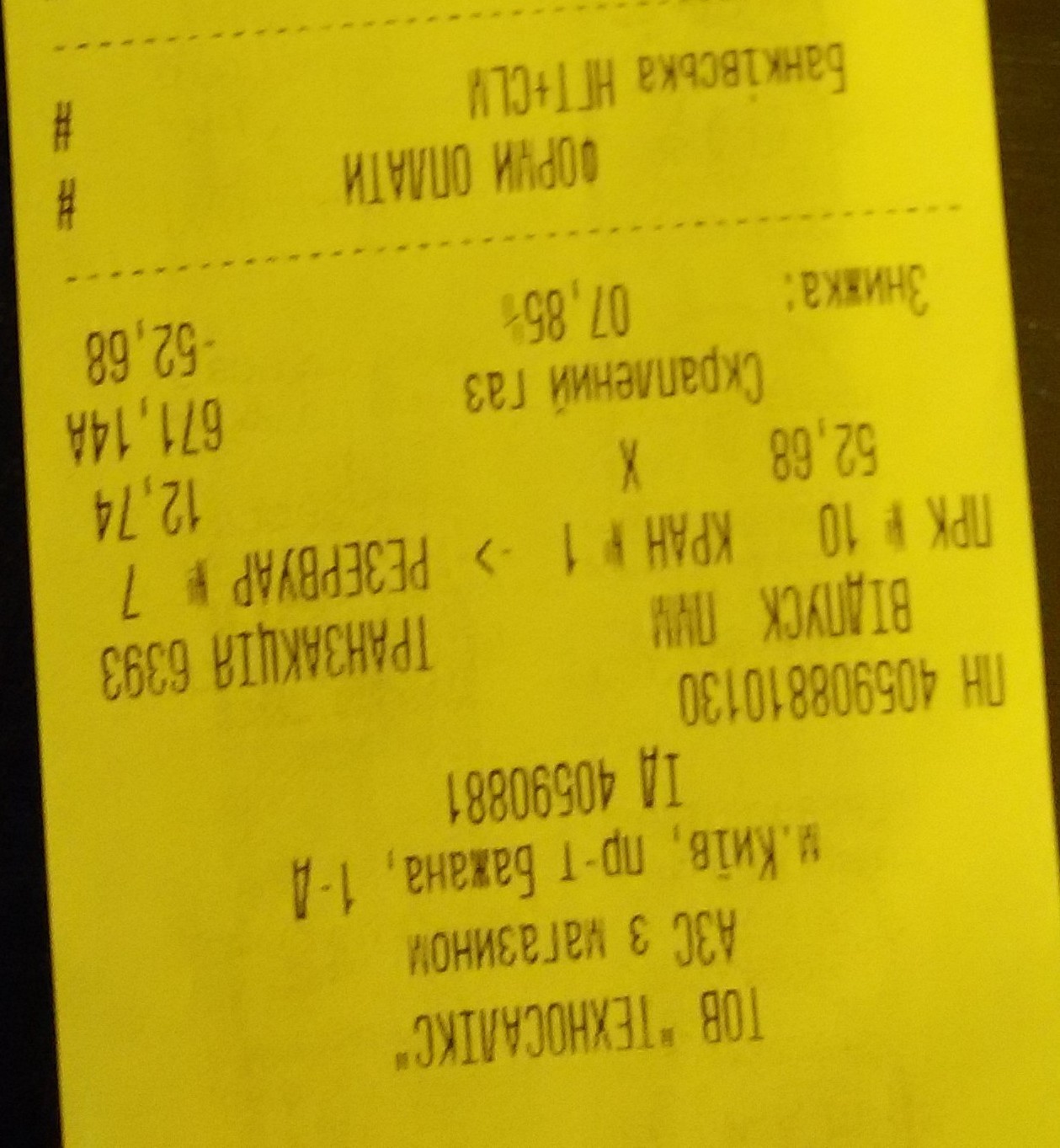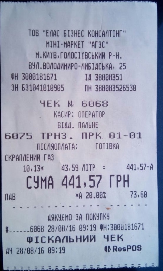 Бак 50. Залили 52,48. Попросил чек. Выслушал 10 заготовленных отмазок про Т воздуха, про плотность, про килограммы в литры и т.д. ... Стойки с жалобной книгой нету, свидетельство о регистрации юр.лица нету, нету вообще ничего. Попросил пригласить директора, хозяина, кого угодно кто в адеквате и не нюхал клей вместо уроков физики. Отказался. Сказал, что если такое дело, то сейчас приедут ВСЕ :-) начиная с комиссии при КМДА по демонтажу незаконных газовых заправок.