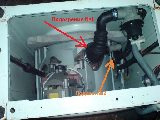 Только с пунктом №1 чуток не так - во время стирки, когда будет замечена появившаяся вода, остановить процесс, поставить на слив и после этого положить на бок (именно на тот где кювета) Фонариком в те требуха - и чудненько будет видно где блестит. Если дожидаться окончания то в месте пропускания уже может подсохнуть и ничего не увидишь. Хомуты не менять, а просто подтянуть на пол оборота.