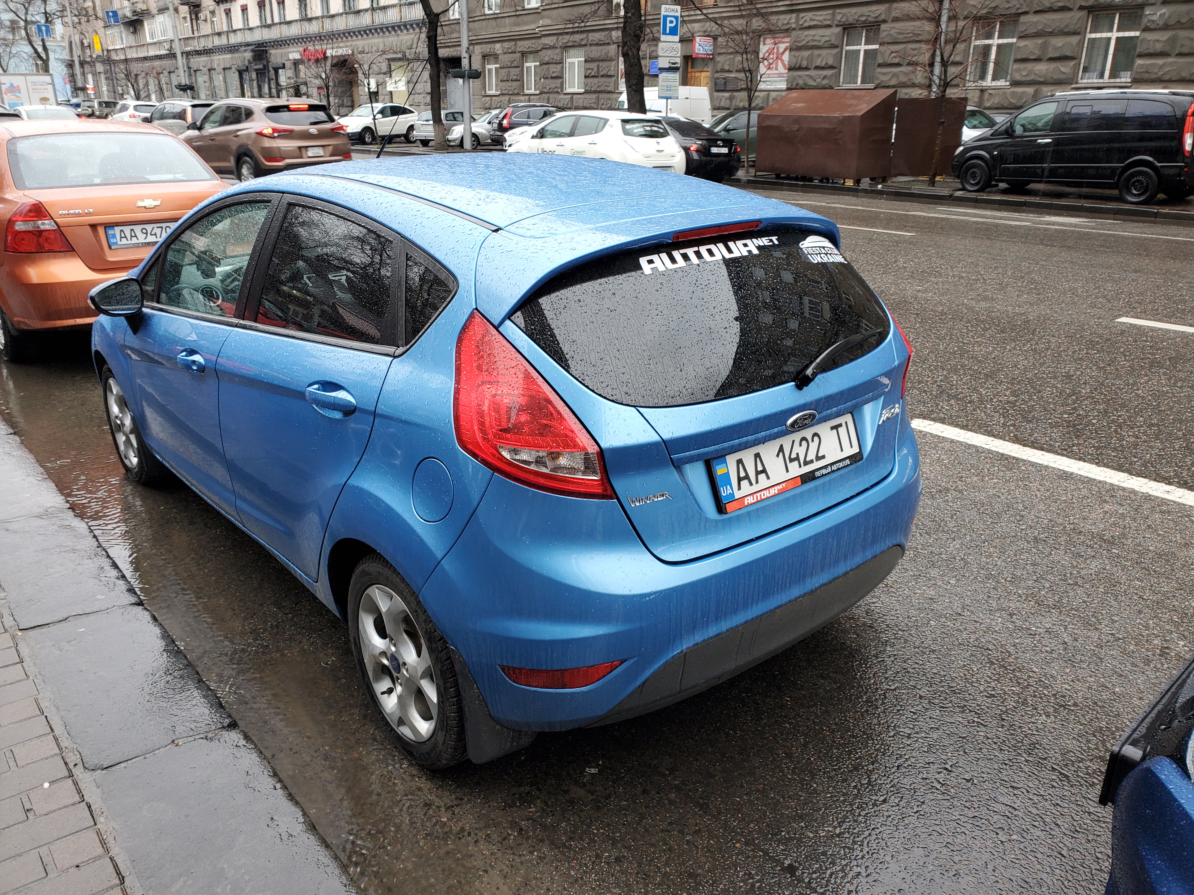 Молчаливое фа-фа бордовому ланосу вечером на пр-те Правды вроде с донецкими номерами и серой наклейкой на серой вставке багажника над госномером Да, я ее таки рассмотрел!