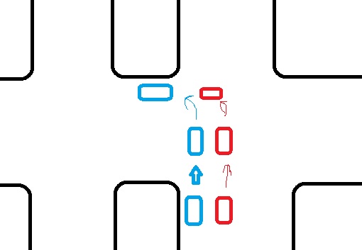 Якщо (він) всетаки надумав їхати прямо - то ви в своїй 3й смузі зупинились би, матюкнулись, пропустили...