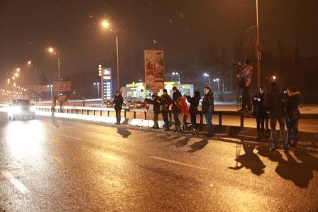 Подтверждаю, БЫЛА новость на многих ресурсах и конкретно анонсировалось что в этом районе будет стоять для фотосессии. Другой вопрос уведомили ли организаторы акции ГАИ и прочие службы необходимые в данной ситуации. Потому что что не говори многополосная дорога (с повышенным режимом скорости летом что уже намекает), ночь да еще и осложненные погодные условия.