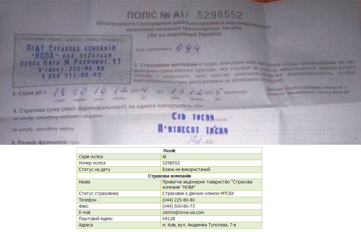 Страхуешься такой в СК "Нова", через месяц проверяешь, по базе mtibu, а твой бланк, оказывается, "не використаний". Пишешь такой в СК "Нова", спрашиваешь о причинах, а они такие морозятся.