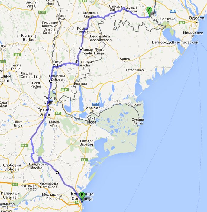 В этот раз решили ехать через Молдову, прочитав, что дороги к румынской границе там лучше ( не верьте на слово ) и решив сэкономить время на погранпереходе вместо Джурджулешт выбрав Кагул. Заезжая вперед замечу, что время особо не сэкономили и дороги в Молдове не лучше Украины. Выехав в 7:00 из Пуркари держим путь на Каушаны. Дорога отличная, идут постоянные работы, но движению это не мешает. Радость была недолгой - участок до Чимишлии, словно кроты порылись, крупногабаритные видно такие Дорога R26 идет вверх-вниз, утомительно… Далее М3 до Комрата уже полностью отремонтирована на евроденьги. В столице гордой Гагаузии решаем перекусить. Где-то в районе центра