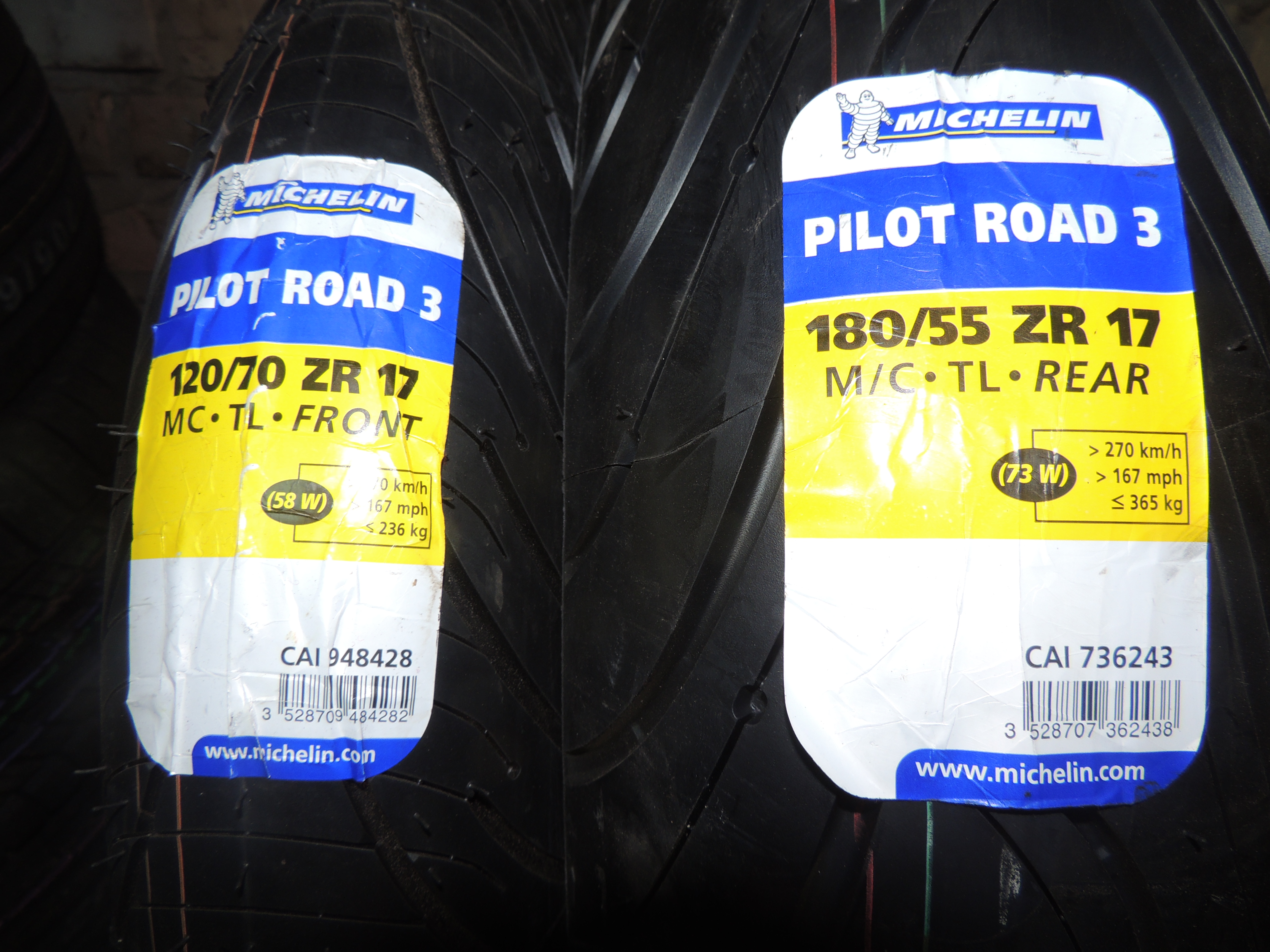 Продам комплект мотошин 120/70 R17 ZR 58W Michelin Pilot Road 3 180/55 R17 ZR 73W Michelin Pilot Road 3 Шины новые. Производство Испании. 6000грн O98 O87 55 8O