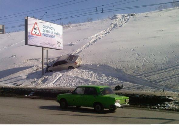 или чувак в багажнике сидит..или колеса не в ту сторону рисунком одели-)
