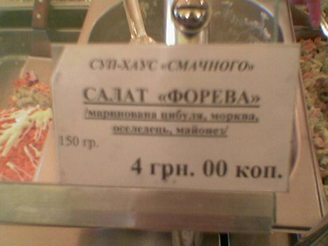 которая переспросила "У Вас салат форева?", на что получила ответ "тугеза "