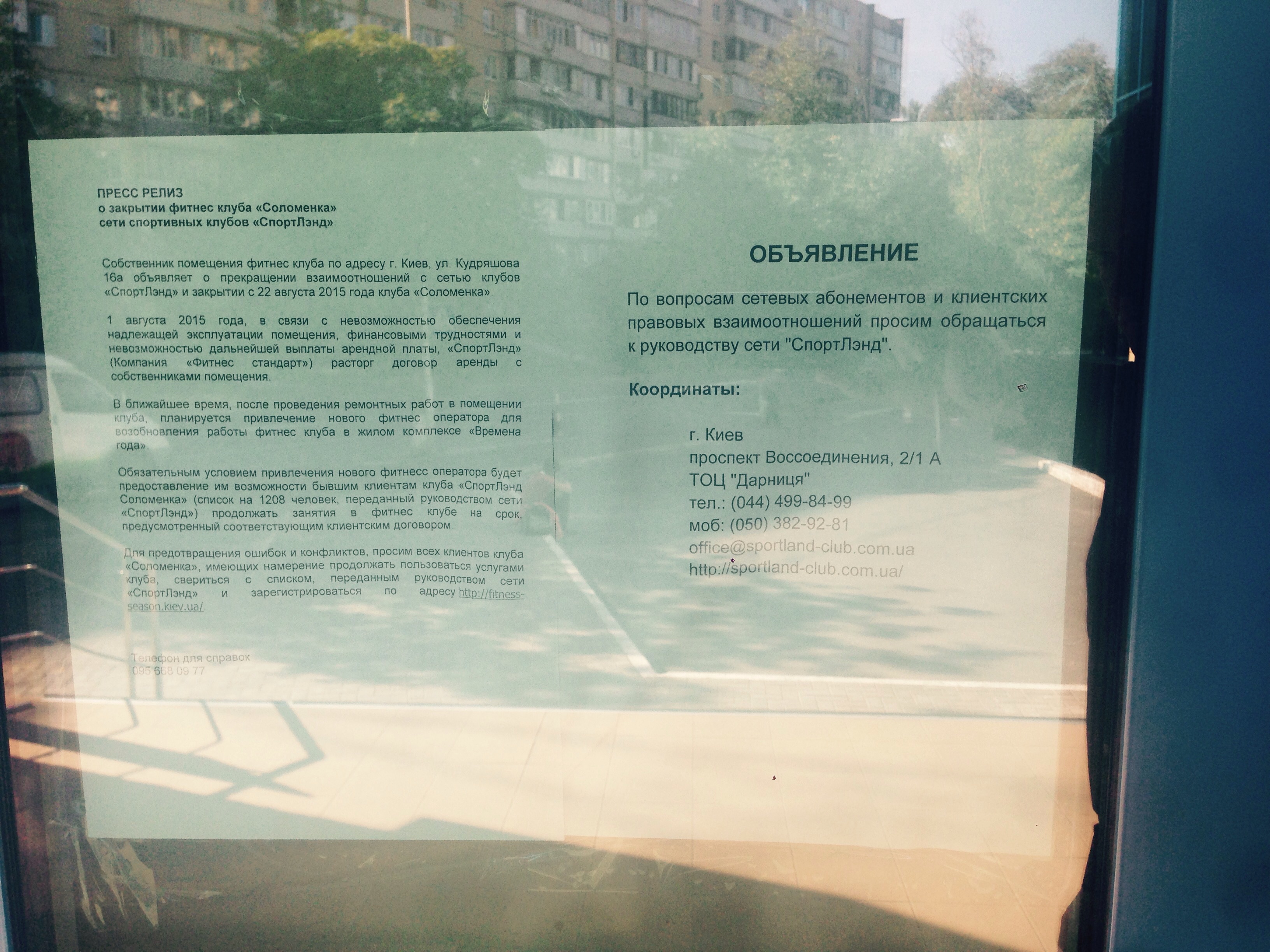 Приезжаю сегодня в 9,30 утра на Кудряшова в спорт-клуб СпортЛэнд, который самый большой в сети и с бассейном, а там объява: "АО МММ радушно закрывает перед вами свои двери! Всем спасибо, все свободны! Пишите письма мелким почерком! Кто не успел купить акций - звыняйтэ..." Вчера там плавал с 15,00 до 16,30 а в четверг с 16,30 до 18,00 - ничего беды не предвещало, все, как всегда, "до свидания, ждем вас завтра!". Покращення? Или таки нефть по $39???