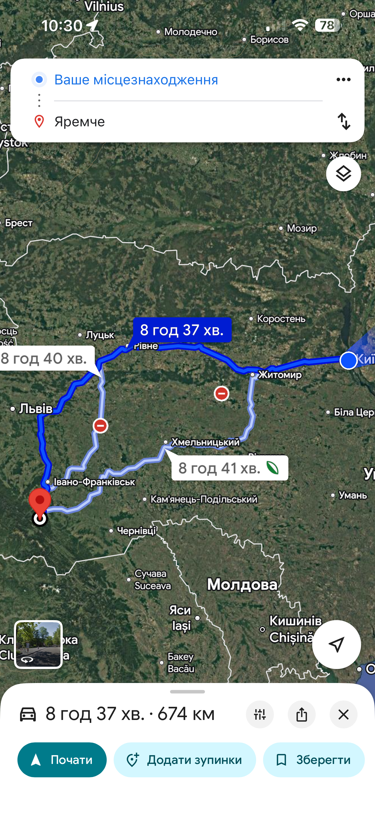 Частіше їжджу саме так, там є ділянка поганої дороги, але вона не велика. Через Тернопіль інколи може вийти швидше, якщо немає пробок, але через Золочів найкоротший маршрут.