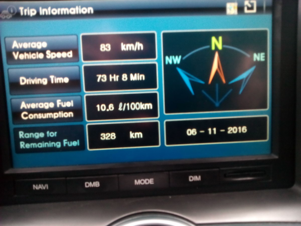 4605 км, средняя скорость 83 км/ч, время в пути 73часа, средний расход 10.6 литра, скорость держал как положено: в городах 40+10 или 50+10 км/ч, по трассе как положено: 80-90 +10 км/ч, по автомагистралям топил 125-130 км/ч.