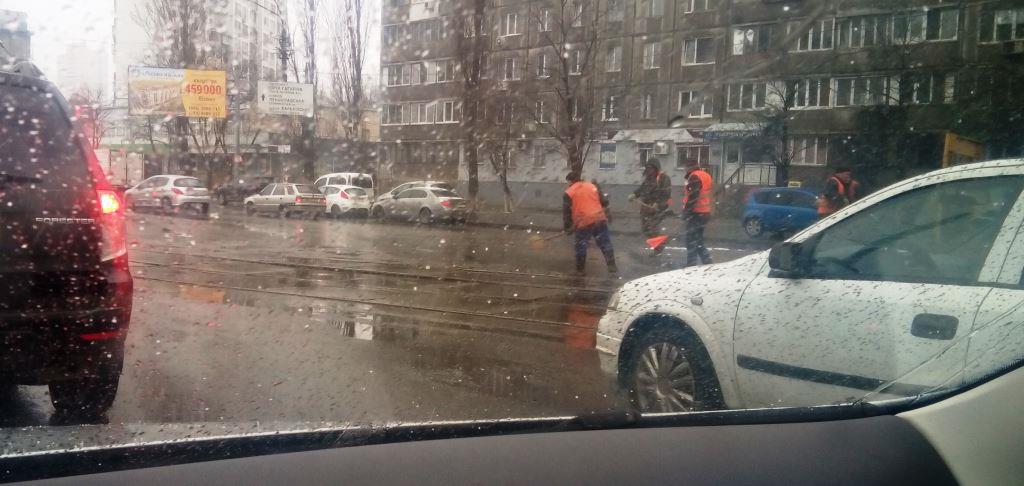 Ямочный ремонт сегодня по левому берегу. ул. Закревского, м.Черниговская, ул. Гагарина. Мелкая щебенка + фиксатор. По такой технологии в прошлом году делали Житомир-Попельня.