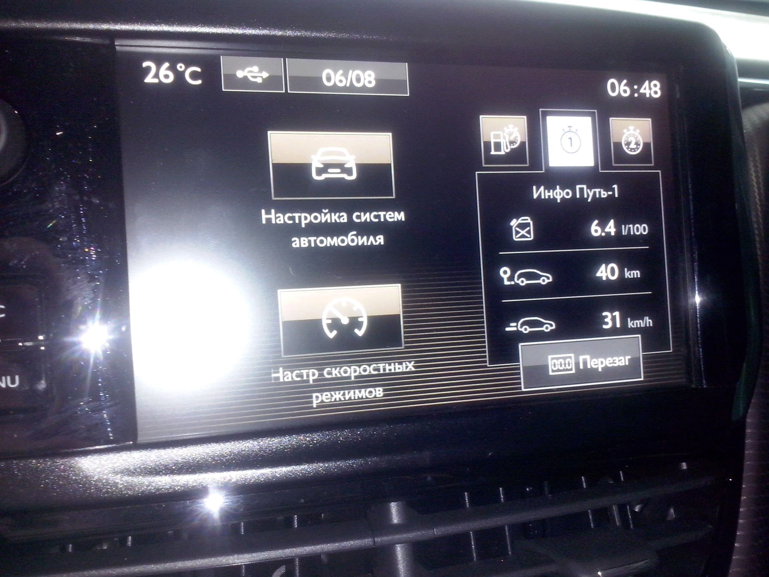 Движок 1.2, трех цилиндровый , коробка робот. Машина прошла всего ничего. Средний общий расход где то 7 литров на сотню по компу. Сегодня поездка 6.4, с климатом постоянно, жара. Цикл будем считать смещанный, в основном город но был кусок по трассе и грунтовка за городом. По паспорту вроде в этом режиме пишут будет 4.9 литра на сотню. Посмотрим после 3000 км пробега, когда обещают стабилизацию расхода.