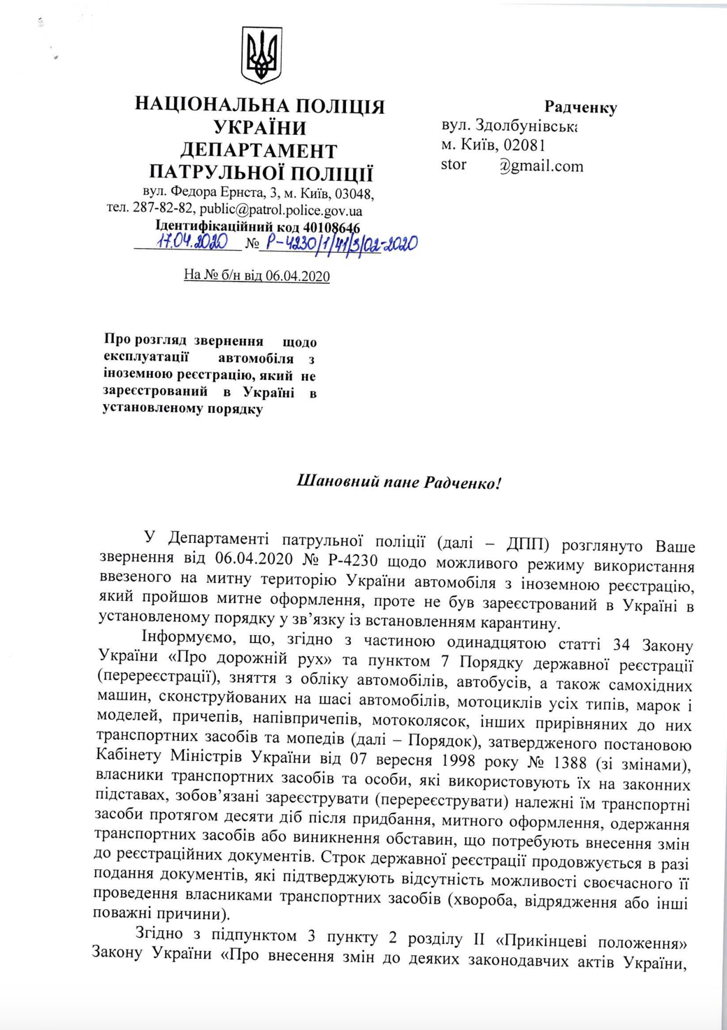 Сьогодні отримав листа від Патрульної Поліції з роз'ясненням що робити: