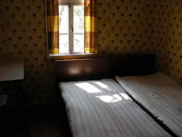 Б/о "Деснянские зори" (сельсовета) ---------------------------------- Название условное, так как вывески нет. Деревянные 3-местные домики, удобства на улице. Душевая – за территорией. Домики снаружи выглядят ободрано, но обещали покрасить. Внутри кровати нормальные, 3-я кровать в некоторых домиках – двухэтажная. От въезда до противоположной стороны – большая зеленая территория. Детской площадки я не видел, возможно, она с другой стороны базы. Перед самой базой пляжа нет, только спуск к воде. Пляж – метрах в 150, перед базами Метро и Солн.Берег, туда пускают всех отдыхающих, сельским и приезжим доступа нет. Пляж большой, земля-трава, спуск к воде песчаный. Цена – 100 грн за домик в день, за постель отдельно 5-10 грн. Платить за 1 день. Итого: 100/3 плюс постель – 40 грн/чел.