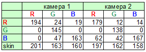Я посмотрел табличку из второго поста,красный и синий в обоих камерах очень разный,а скины почти одинаковы.