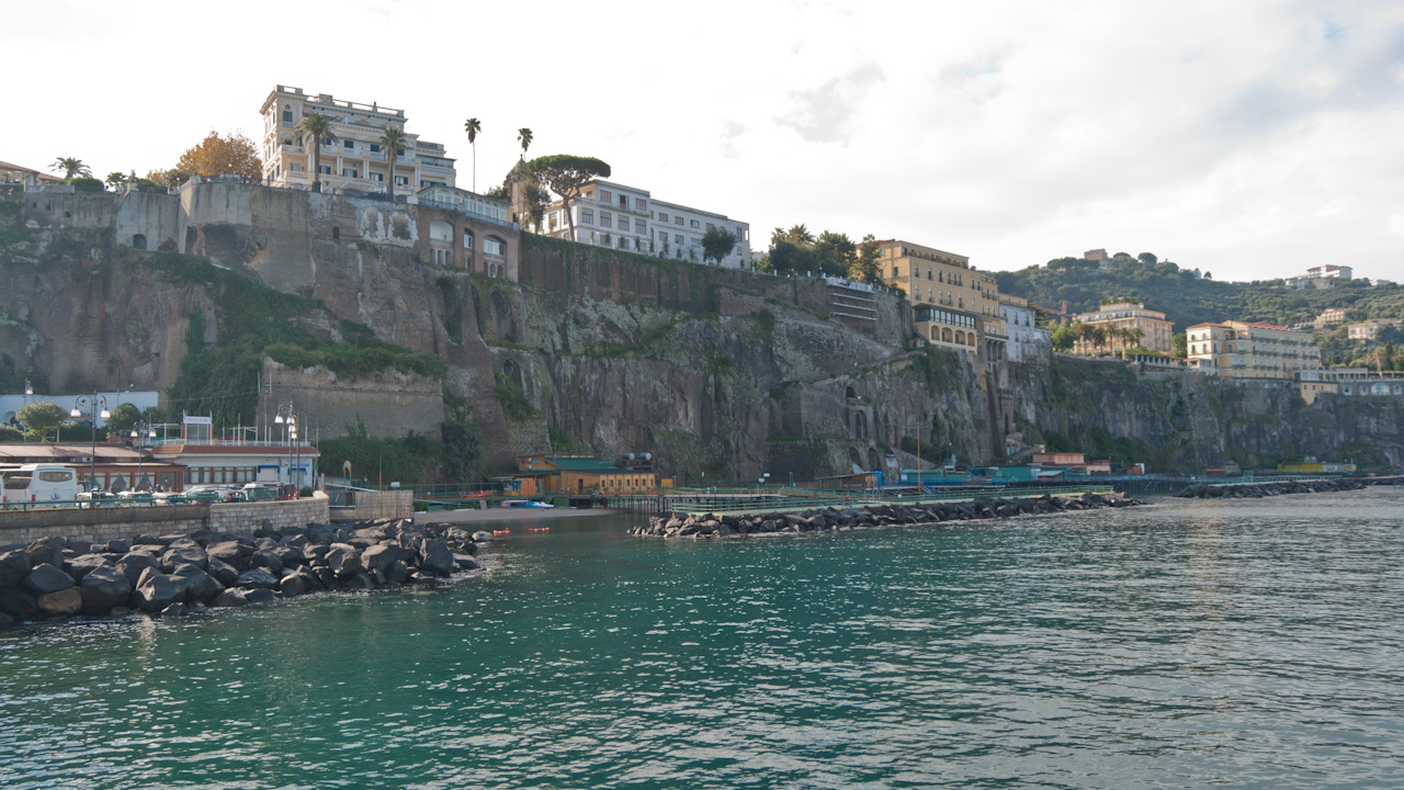 Прогноз на следующий день обещал ясную погоду, потому мы решили раненько с утра идти на паром и двигать на Капри. Сорренто устроен достаточно забавно: весь город расположен на скалистом утёсе и сам по себе практически плоский - ходить можно вечно - но к пляжу или в порт надо идти вниз (или платить 1Е за лифт, который тоже имеется):
