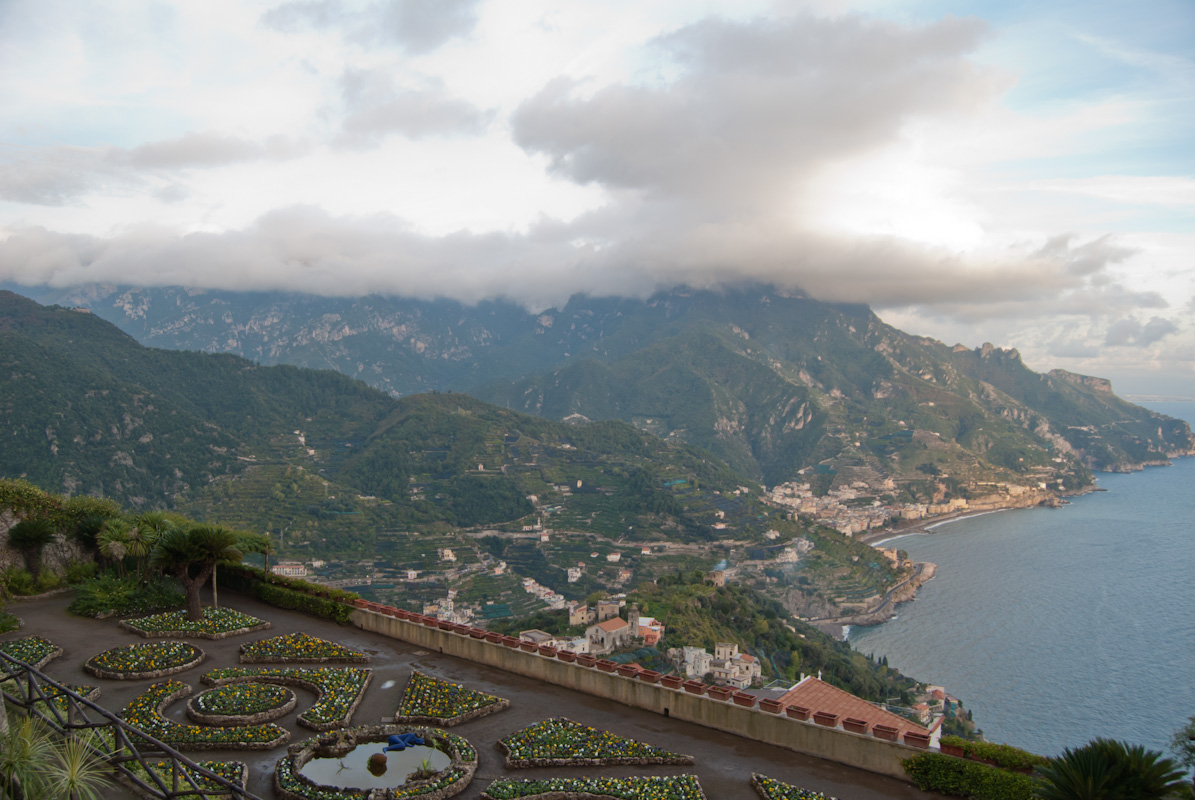 Здесь основной интерес (кроме традиционной церкви) представляют две виллы, построенные ещё во времена сарацинов - вся южная Италия, включая Сицилию и Сардинию, была под их властью в раннем Средневековье - причём, с тех пор городок потерял своё политическое значение, потому эти виллы не реконструировали позже в стиле какого-нибудь барокко Мы были на вилле Руфоло, во вторую не пошли в виду усилившегося дождя Внутри виллы проводят различные выставки - интерьеры не сохранились, только внешние стены со стрельчатыми окнами, типичными арабскими внутренними двориками и орнаментами. Зато воссозданы сады на каскаде площадок у стен виллы, откуда открываются замечательный виды на залив и близлежащие городки Миноре и Майоре (Маленький и Большой, в смысле) - они построены по две стороны соседнего ущелья. Сады просто потрясающие: обилие цветов разных расцветок, много плетущихся растений на стенах, много искусственных каскадов и водопадов, а также пруд с красными карпами.