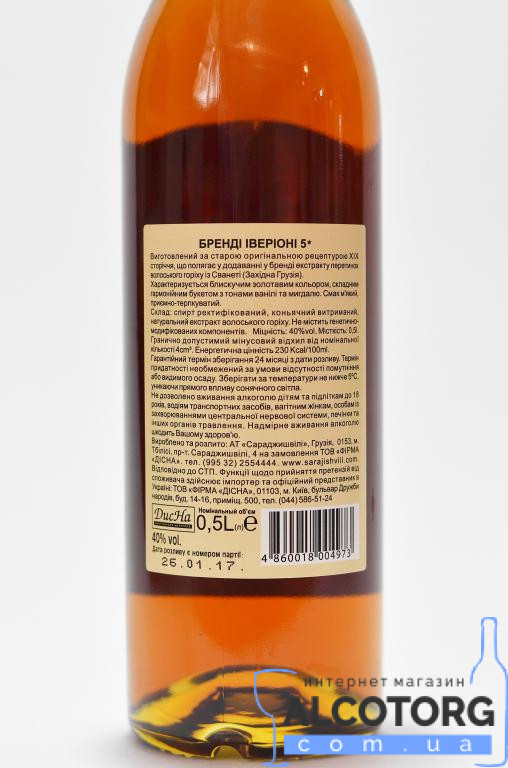 "Прекрасный" "бренди" Iverioni состоит в основном из спирта ректификованного .