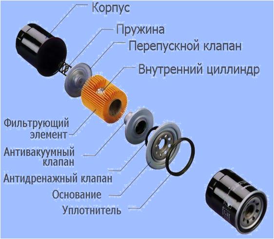 масло стекает через перепускной клапан фильтра обратно в картер